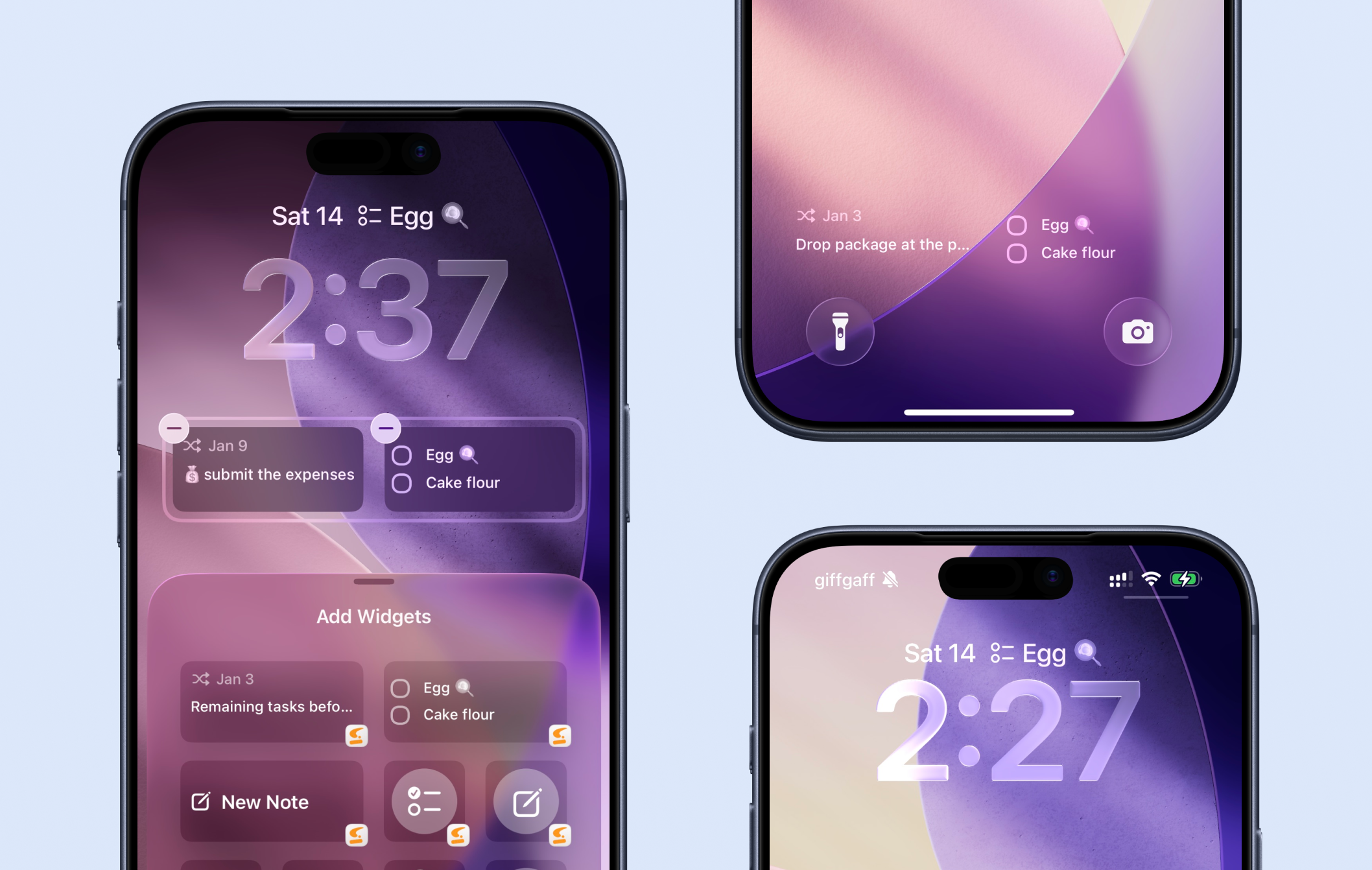 You can add multiple Strflow widgets to your Lock Screen — above the clock or in the widget area below, wherever you prefer.